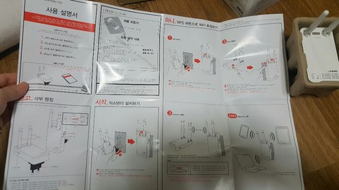 아주간단하죠~~? 콘센트에 꼽고 공유기의 버튼 누르고 본체 버튼 누르고 파란불 확인~~! 끝