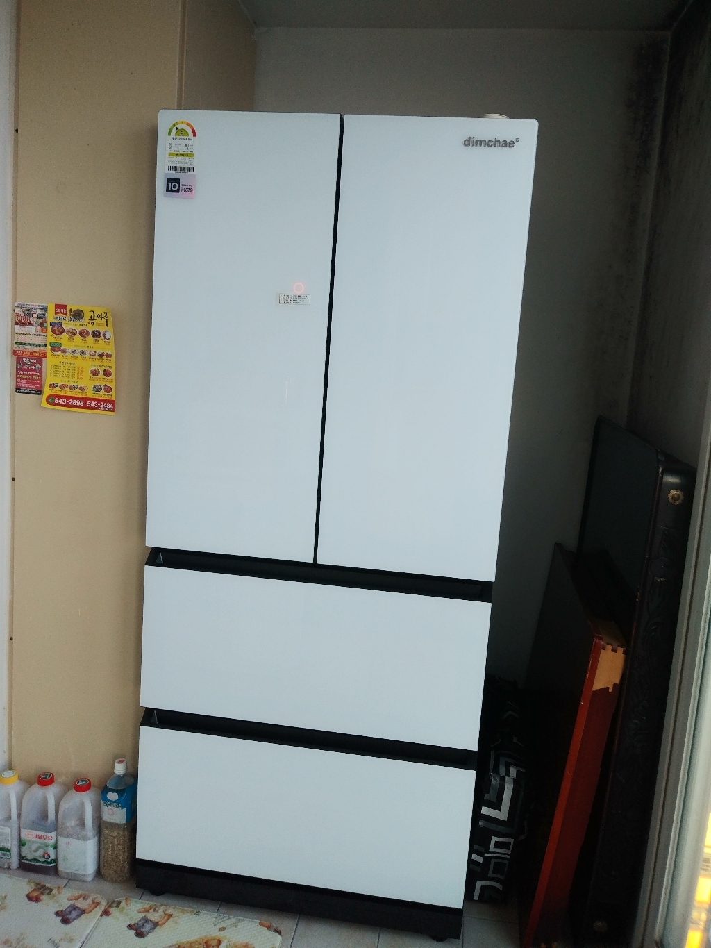 용량 작은것과 고민하다 551리터 선택했어요. 너무 크다 싶었는데 냉장고 용량이 작아 여유롭게 사용하려고 큰용량 선택했는데 아래칸 서랍에 쌀, 과일, 야채 넣고 위서랍에 김치, 상부에도 김치랑 음료 섞어 놨어요. 여름에는 위칸 냉동, 냉장으로 사용할수 있어 좋구요. 김치통도 엄청 커서 김치 많이 들어가네요. 디자인 깔끔하고 심플해서 맘에 쏙 들어요. 배송도 친절하시고 금방 설치하시네요. 도어포켓이 있어 그런지 양문형 냉장고 보다 조금 더 튀어 나옵니다.