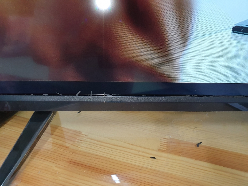 부모님방에 설치 했는데 아래 부분에 고무 찌꺼기가 있네요 보기가 너무 흉하네요. 이게 뭔지요? 화질은 괜찮은것 같습니다. 마무리에 조금 신경쓰셔야 겠네요