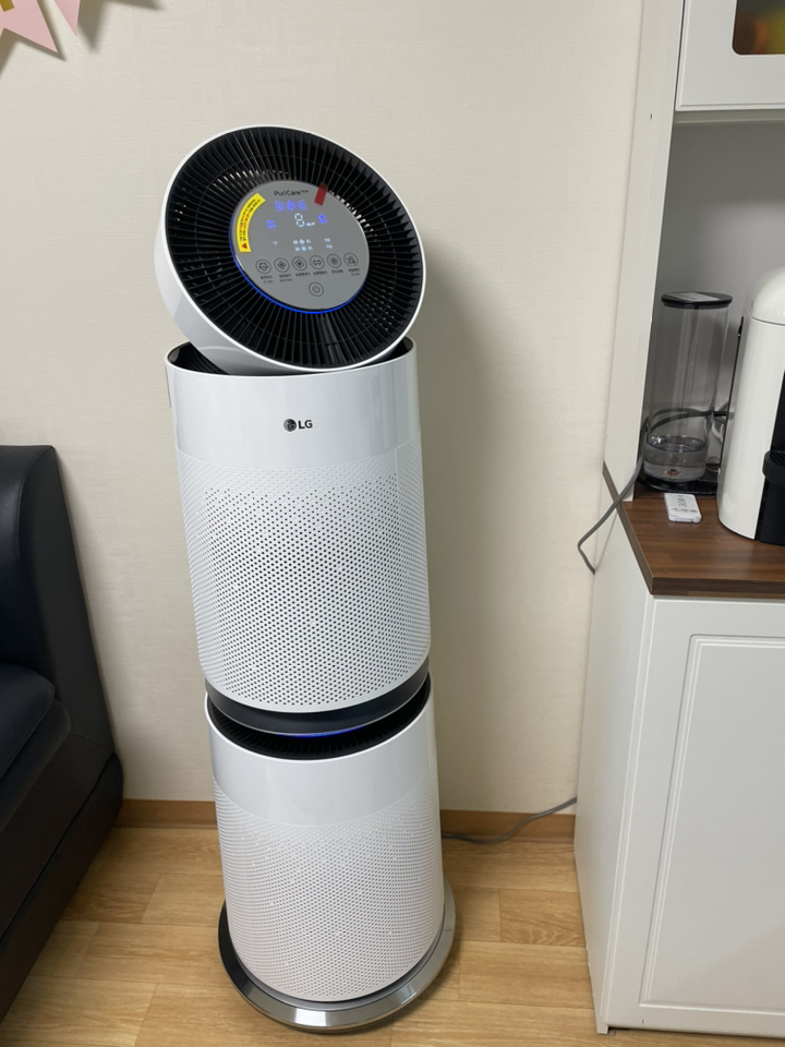 일단 . . . 많은 고민끝에 구입했어요 가격이 저렴한게 아니다보니 . . . 그리고 집에 공기청정기가 없는건 아니였어요 위닉스를 쓰던 상태였는데 . . . 집에 아이둘에 . . 둘째는 이제 갓 돌쟁이고 강아지까지 키우고 있는데다 집이 1층이다보니 생각보다 먼지도 잘들어오거든요 그래서 용량이 좀 컸음.좋겠다 싶었어요 여러상품 알아보다 요 제품이 눈에 들어와서 계속 떠나지를 않더군요 ㅠㅠ 그러나 집이 25평 아파트인데 신축이 아니다보니 25평이래도 신축보다 확실히 좁거든요 그래서 1단을.살까.2단을할까 고민하다 그냥 큰맘먹고 2단으로 질렀네요 용량이커서.나쁠건 없다 생각했어요 결론은 아주.대만족.이예요 배치만.잘하면 아주 부담스러울 정도는 아닌것같아요 디자인도 깔끔하고 . . . 그리고 무빙휠을 사야하나 고민을 많이했는데 구매하길 잘했다싶어요 . . . 청소할때도.옆으로 밀기만.하면.되서 아주편해요 클린부스터 기능으로 자동으로 맞춰놓으니 상황에따라 청정도도 바뀌는게 보이네요 딱 틀자마자 새것이라 그런지는 몰라도 기존에 쓰던것보다 뭔가.상쾌한 기분 이었어요 전 혹시몰라 필터세이퍼를 따로 구매해놓은.상태예요 아무래도 필터가 비싸고 위아래 이중으로 들어가니 필터세이퍼까지 이용해서.필터사용률을.좀 효과적으로 쓰고싶어서요 일단 기능적인면은 믿고사셔도 될것같구요 혹시나 집이좁아 걱정이신분들은 제 사진보고 판단하심.될것같아요 전 아주 만족해요^^