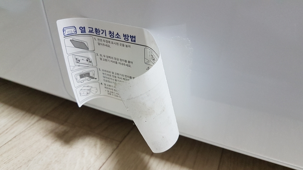 딱 건조기앞에 섰는데 스티커가 손도 안댔는데 떨어져있더군요. 낮에 설치기사님이 스티커 어쩌고 말하시길래 뭐라구요하니까 별일아니라고 그냥 스티커붙여놨다길래 보니까 멀쩡한데 왜 그러시지 했는데 제가 못본 사이에 떨어져있던걸 꼭꼭 붙여놨나보네요