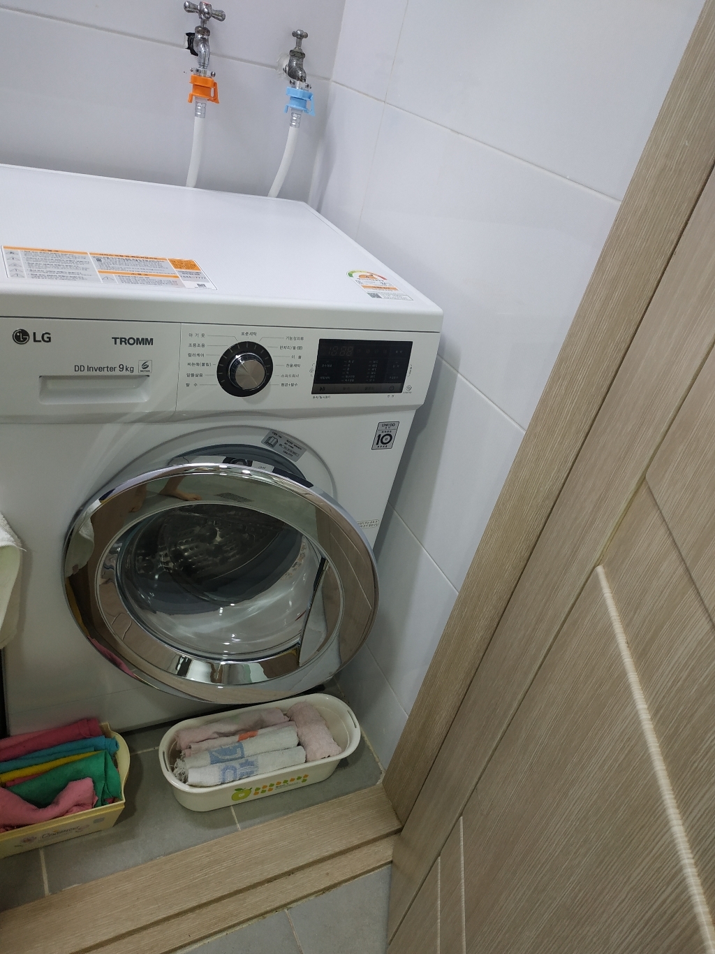 다만 고급스런 트롬 드럼 세탁기 실물 버전이 훨씬 이쁘다는 점 3인가구에서는 매일 빨래를 돌려야 할 것 같지만, 공간을 확실히 덜 차지해서, 이동시에 불편함은 확실히 없네요