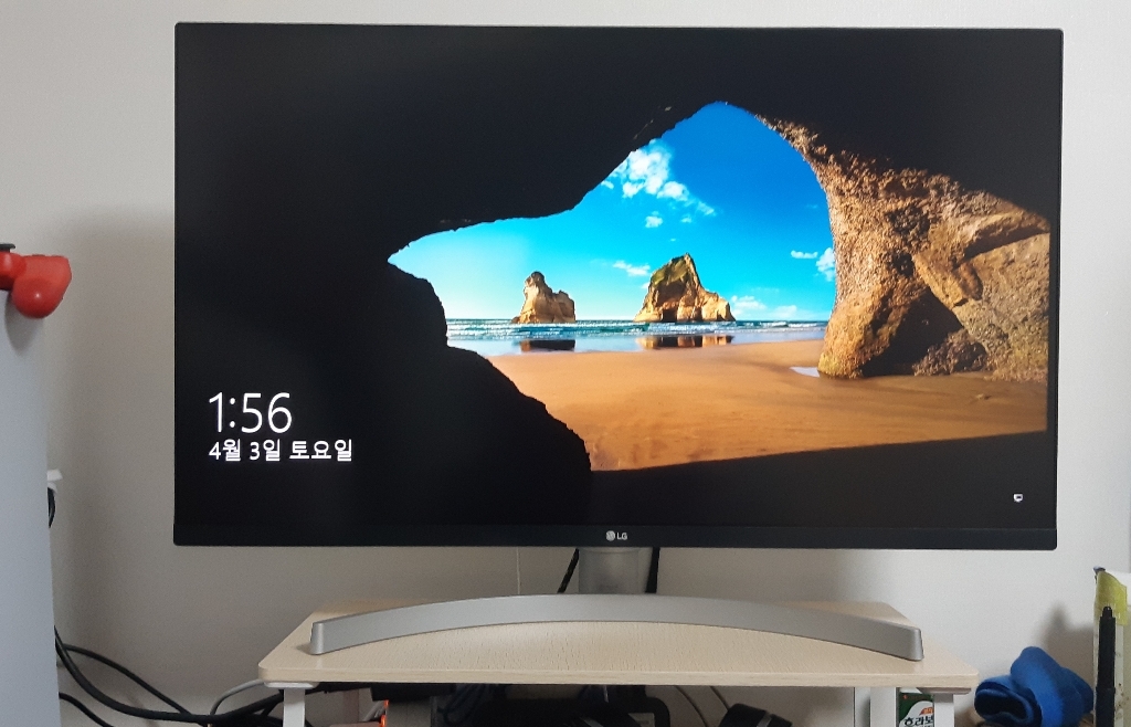 많은 분들 평가대로 가성비좋은 4k모니터로, 이 크기가 책상위에 두고 사용가능한 마지노선이라 보면 됩니다. 구매하고 '4k가 고작 이정돈가?' 했는데 전에 쓰던 fhd모니터를 켜보니 역체감이 훅 밀려오더군요. 제돈내고 구매한 영화는 480p만 나오지만 공짜로 볼 수 있는 영상은 4k를 지원하는 유튜브를 멀찍이서 보고있자니 이걸 사길 잘했구나 싶었습니다. 의외로 내장스피커도 들을만합니다.