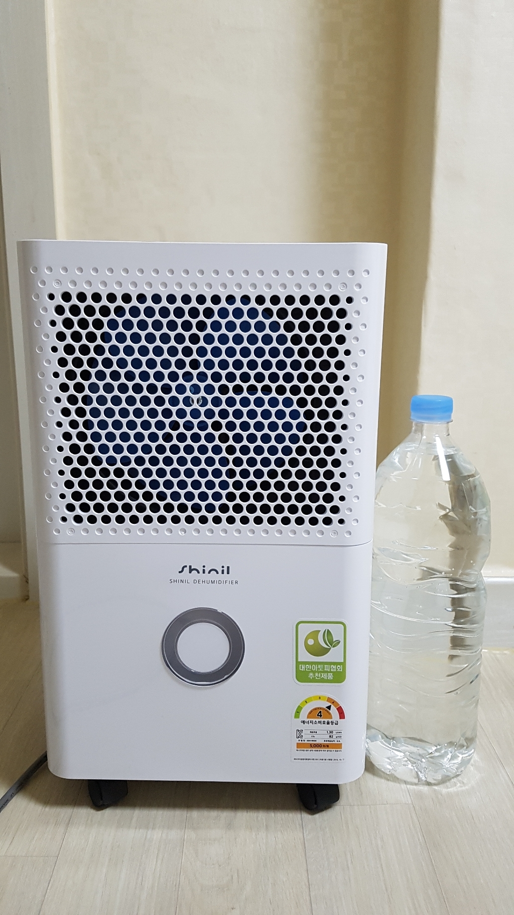 빨래 널고 제습기 옆에 켜놓고 잤는데 빨래도 어느정도 말라있고 물통에 물 꽉차서 자동으로 꺼졌어요.