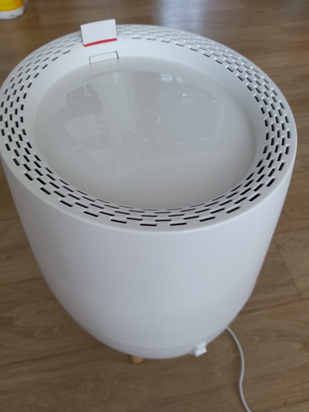 디자인 좋음. 사진에 보는 그대로예요~~ 가습효과 좋아요 2리터정도 들어가는데 약으로 해놓고 10시간씩 2일이면 모두 소진됩니다. 강으로 하면 20평대 가습하기엔 딱입니다. 방 하나에서만 사용하려면 약으로 해놓으면 되요.