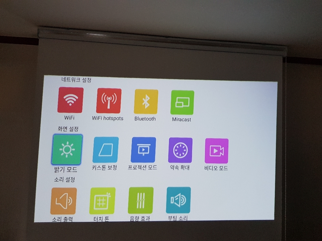 저렴한 1만5천정도 싼암막커텐사서 창을가렷더니 낮에도 잘나와요. 영화볼만해요.