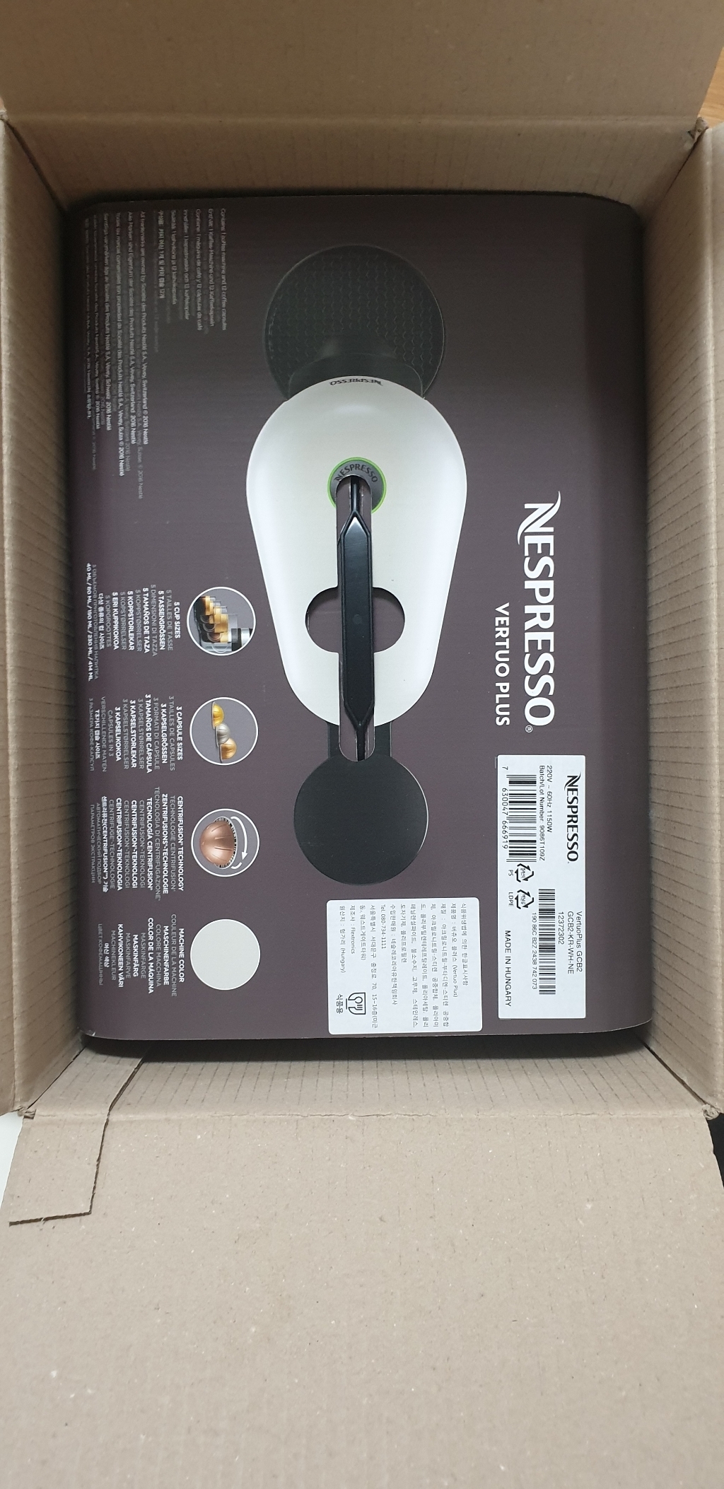 오리지널머신과 다르게 물의 양 버튼이 없음 지능적? 이라 캡슐마다 있는 고유의 바코드를 머신이 읽고 버튼 하나로 모든 캡슐의 물의 양을 알아서 추출해 줌