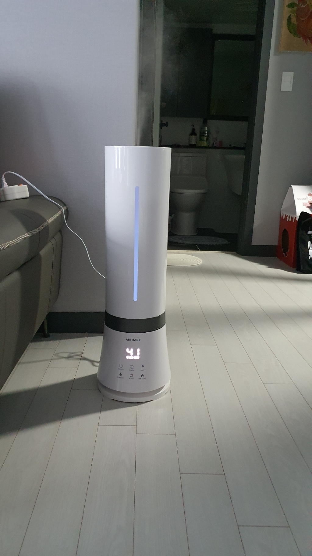저희집은..고양이두마리와함께 생활하고있습니다 고양이는 습도 온도에 민감한 동물이다보니 겨울철가습기를 알아보게되었고..분무량과 대용량 물주입이 가능한 에어메이드 amh-9000 모델을 선택하게 되었습니다 장점은 첫째.포장이 너무 꼼꼼하게되어있어 감동받았습니다 둘째.설명서부분이 표시가잘돼어있었습니다 처음에작동 안돼서 당황했었네요ㅋㅋㅋ 설명서부분에 전원 껏다가 켜보라는부분확인후 다시 진행해보니..웜매...가습량대박입니다 셋째.습도설정이가능해서 따로습도계를 구매하지않아도 될듯합니다 넷째.정말 물양이 많이들어가네요 처음사용이라 1.2리터짜리로5번 넣었습니다..그런데 더들어가겠더라구요 3일정도까지도 신경안쓰고 쓸수있을듯합니다