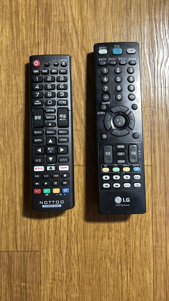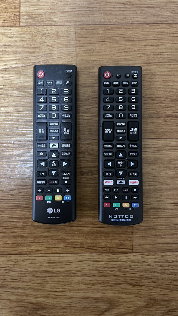 구매한 NOTTOO 리모콘이 엄마방에 있는 티비모니터 엘지 오라지날 리모콘과 거의 90%이상 같은 위치의 버튼 거의 흡사하네요.