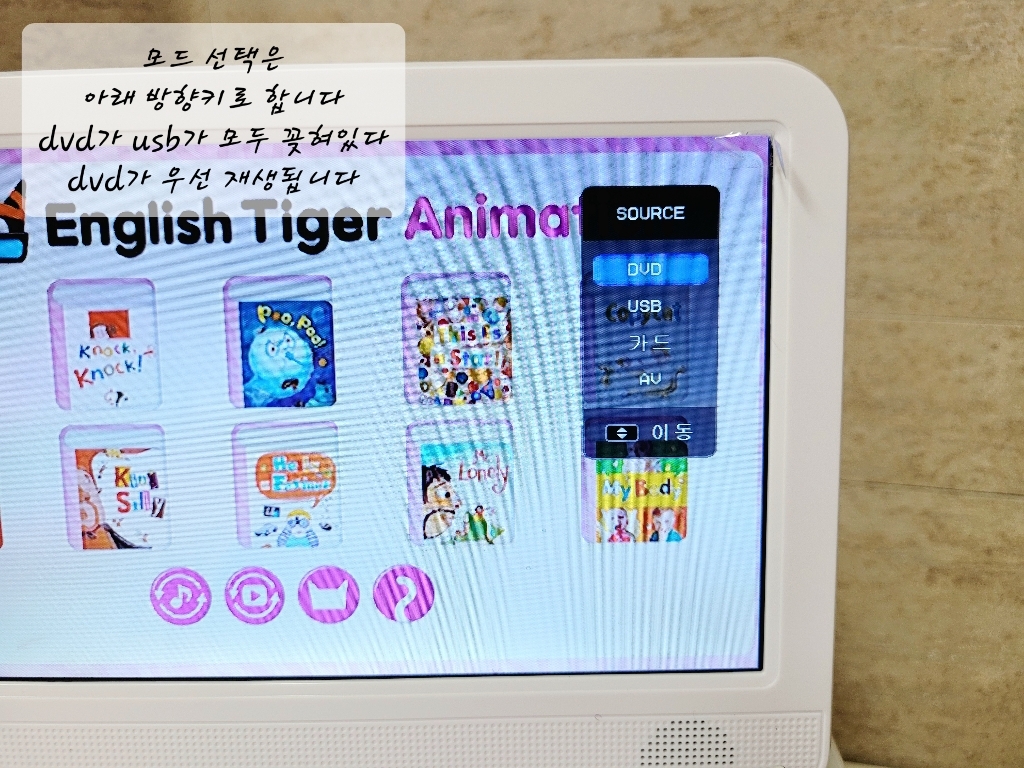 그래서 아예 다른 유혹이 없는 이런 DVD플레이어가 정말 어학학습용으로 좋은 것 같아요.