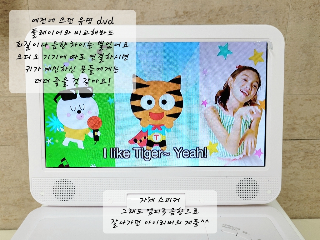 아이리버 휴대용 DVD는 패드로 이미 익숙해진 아이도 쉽게 들고다니고 CD를 넣어서 볼 수 있을 정도로 조작법도 쉽고 휴대성이 좋아서 마음에 듭니다.
