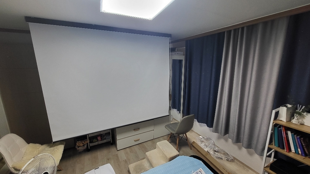 이것저것 둘러보고 고민하고 주문했다 취소하기를 반복.. 이거보고 바로 주문! 너무크면어쩌나..80으로할걸그랬나..하는데 도착!! 기다란박스보고 놀랬네옄ㅋㅋㅋ망설일거없이 줄자와 드라이버하나 챙기고 연필하나입에물고 시작ㅋㅋ..자동줄자로 공간길이만 잘 재서 따지면 설치는 무난하네요~ 제품상태 최상입니다~ 여자혼자 해도 할만했어요~의지가 있으니 하게 되더라구요~ㅋㅋ신랑 퇴근하고오면 깜놀하게 해주려구용~ㅋㅋ빔프로젝터랑 요거랑 몰래사서 방금 막 설치했답니다~ㅋㅋ제 로망이었던 안방극장~♡♡♡
