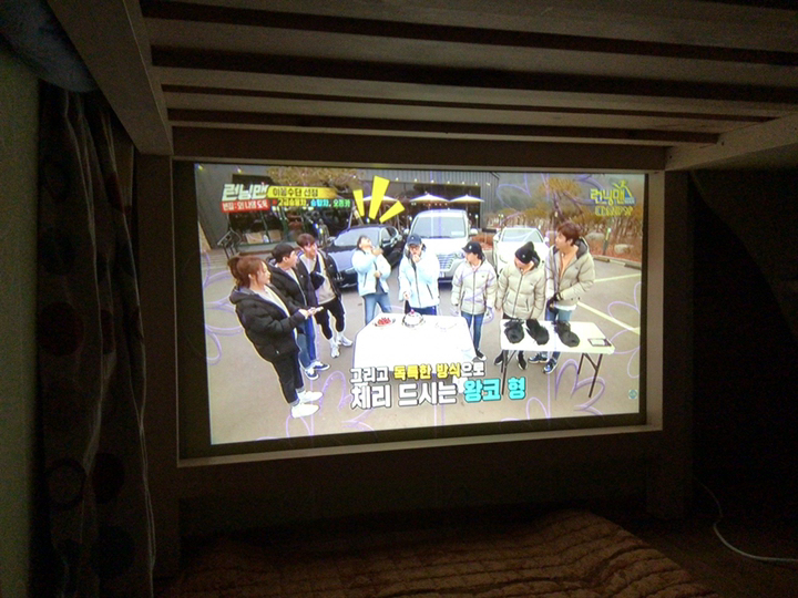 화면 조정 안된다는 리뷰를 여러개 보긴했는데 이건 초점도 잡을 수 있고 키스톤도 위아래로 쉽게 조정할 수 있게 되어있어서 화면 쉽게 맞출 수 있더라구요 그게 너무 좋았어요 : )