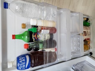 냉장실 문 맨 위칸에 큰 생수병이 들어가서