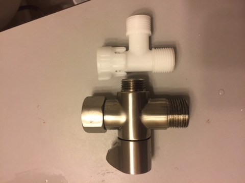 ---- 지금 2018년 8월입니다 (위 후기는 2017년 11월). 현재까지 너무너무 잘 사용하고 있구요, 진짜 이쁘고 좋아서 한개 더 구입했습니다. 안방에 비데 고치러 오셨던 기사님도 감탄하고 가셨어요 -- 현재 2019년 7월입니다 현재까지 잘 사용하고 있고, 작년 8월에 한개 더 구입한거는 미국으로 가져와서 설치 했습니다. 냉온수 나오는 연결하는 곳이 한국처럼 밖으로 나와있지않아서 (가구같이 닫힌곳에 파이프가 가려져 있어요) 드릴로 호수 낼 구멍 뚫기가 귀찮아서 그냥 냉수만 한개 연결해서 씁니다. 일단 벨브가 사이즈 안 맞아서 3 way valve (다섯번째 사진, 벨브 비데에 딸려오는거랑 제가 산거 비교) 사서 연결했습니다. 그리고 고정이 안 되신다는 분들 7번째 사진 봐주세요. 6번쨰 사진이 테프론테입입니다.