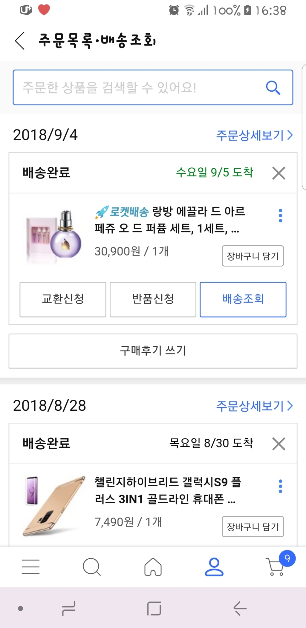 2018년 9월 4일 화요일 주문 9월 5일 수요일 도착