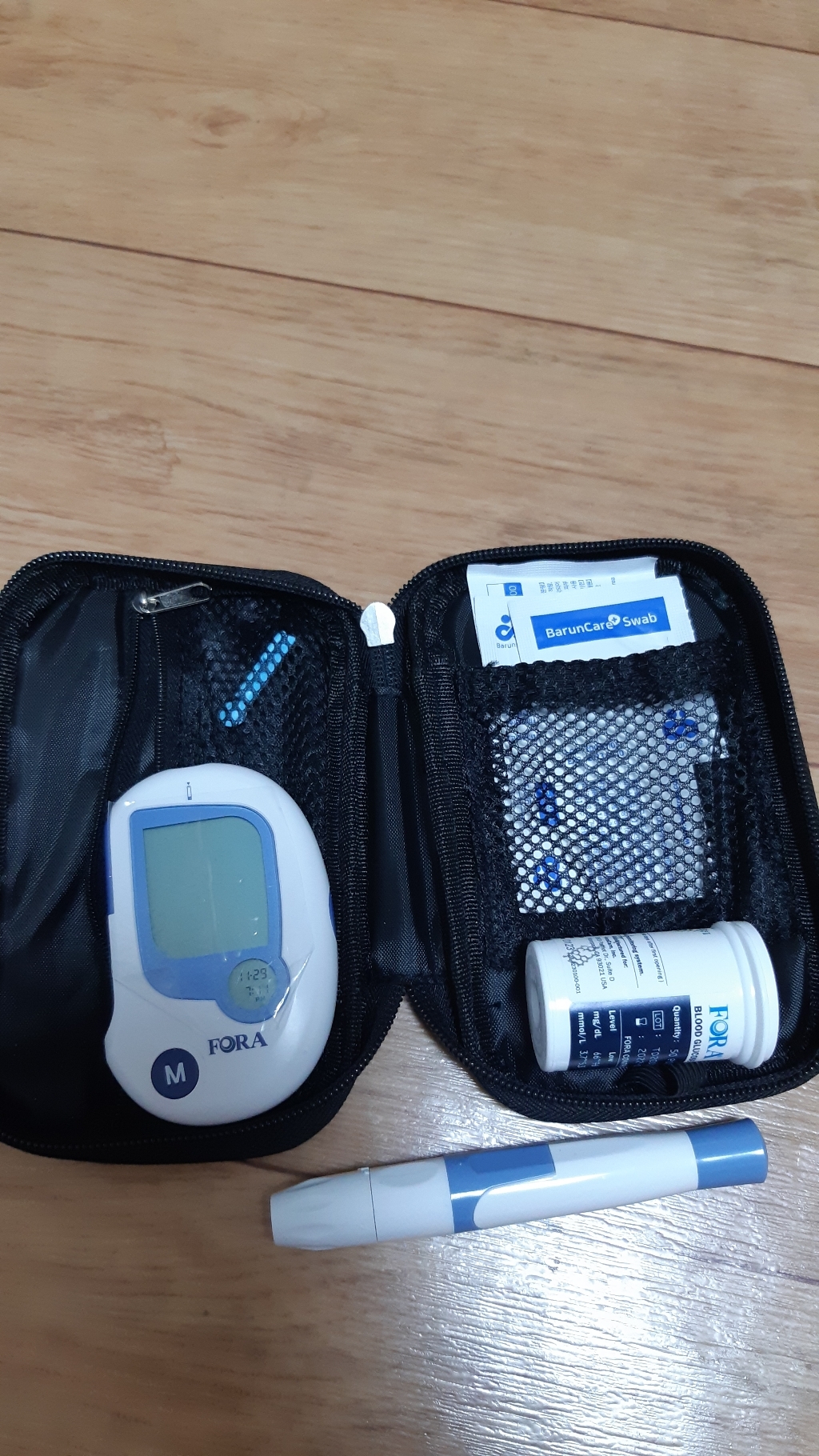 유진포라 FDA 승인 혈당측정기+시험지100매+침110개+솜100매+수첩+메디캣 지퍼백