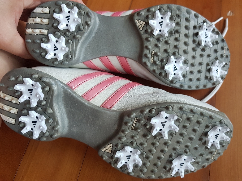 아디다스 정품 마크가 선명한 박스에 담겨 왔어요 원래 있던 징 을 탈거하고 껴있는 흙을 송곳으로 긁어 내고 솔로 깨끗하게 청소한뒤 장착하니 넘 예쁘게 잘 맞아서 새 구두가 되었네요 추천하고 싶어요 남는거로 남편것도 새로 바꿔 줬어요