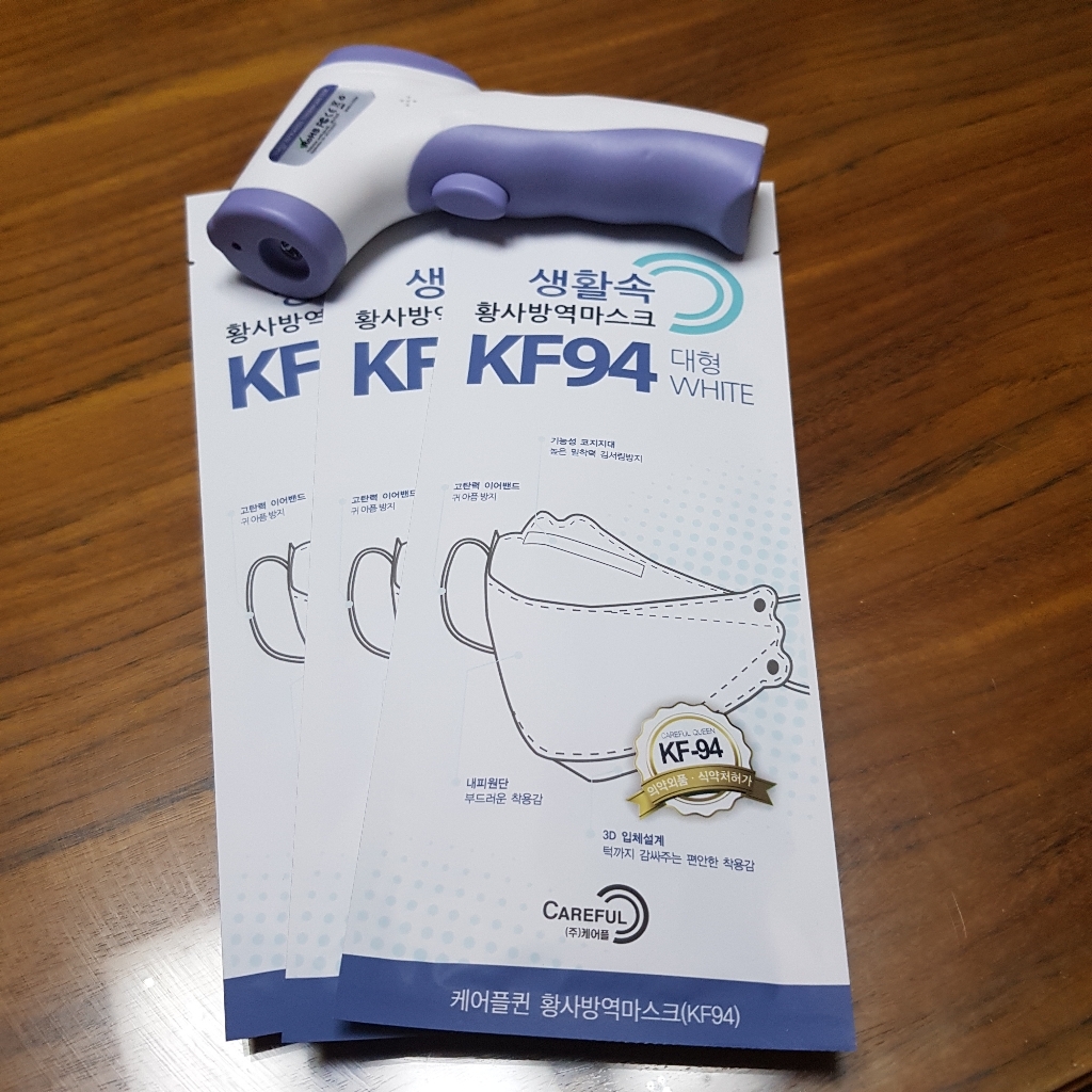 비대면 발열체크기 비접촉식 적외선 온도계 가정용/업소용/사무실용 당일배송 KF-94 3매