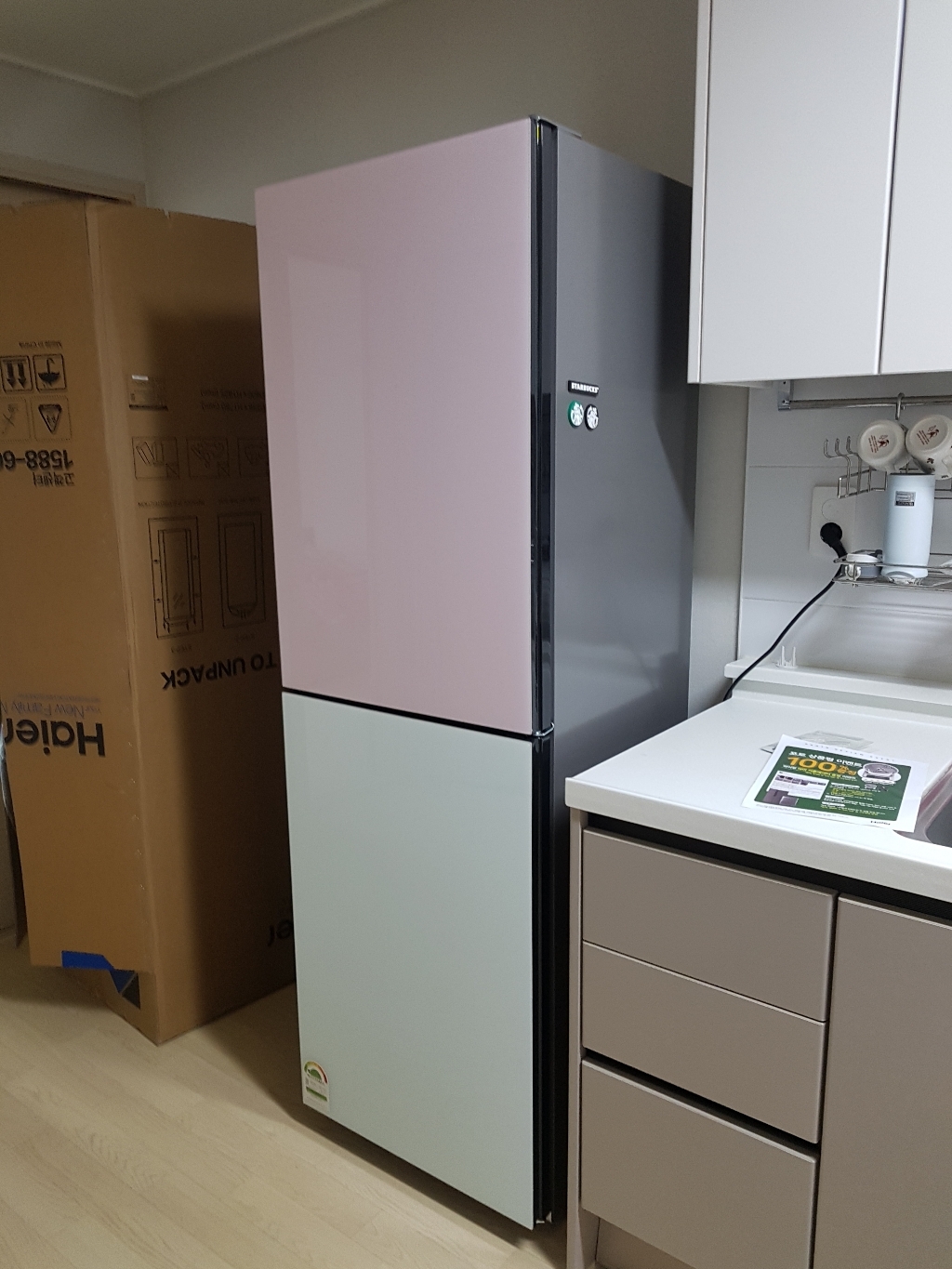 식상한 컬러와 디자신 혹은 다른 중소기업의 이질적인 디자인 들이 좀.. 와닿지 않아서 하이얼 글라스 도어로 선택했습니다!