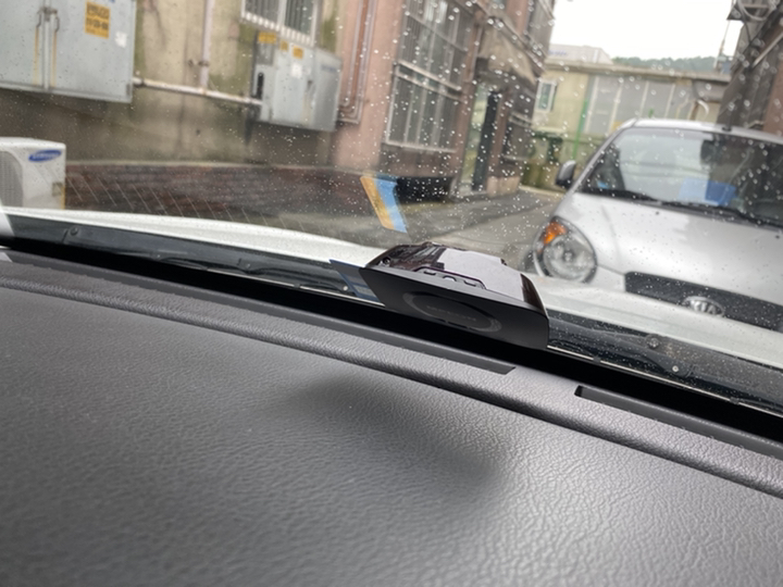앞유리중앙밑쪽에 스티카 띠고 부착햇음다 카드꼽고 후불카드입니다 그소리듣고 달렷는데 음성이 안나와서 당황햇죠