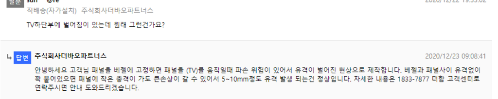 하단부 벌어짐이 있는데 원래 그렇다고 합니다. 10mm 면 1cm인데 생각보다 거슬리네요