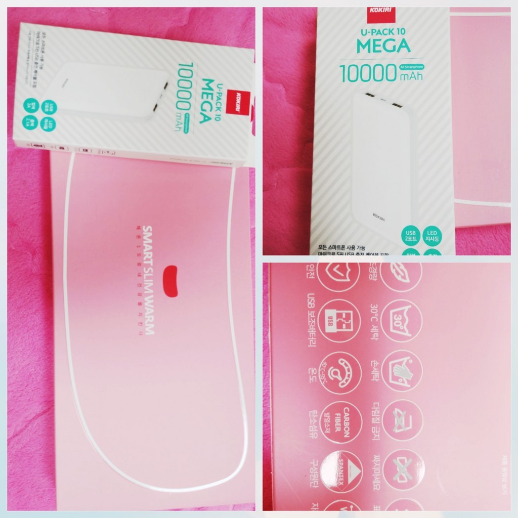 구성이 본기계+보조배터리10000mAh+쑥찜질팩+사용설명서+보조케이블등 이렇게 있네요. 충전핀은 usb 5핀이구요 충전기5핀이 없어도 따로 usb케이블이 들어가 있어요.