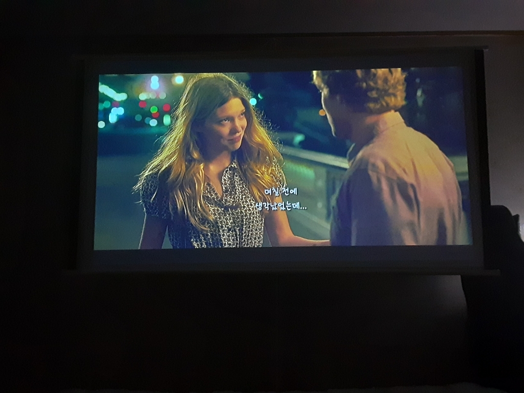 lg ph550 프로젝터에 물려서 사용했습니다 방에 설치했고 암막커튼으로 빛 가림 후 사용하였습니다