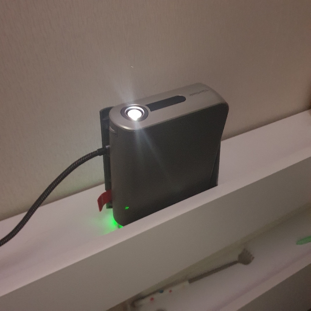 침대에서 천장투사하고 넷플이란 유튜브 봅니다. 미라캐스트도 편하고 블투 스피커 기능도 좋고 크롬도 편하게 이용할 수 있습니다. 충전도 dp 지원으로 편리합니다. 다각도 투사도 가능하고 키스톤도 괜찮아서 편리합니다.